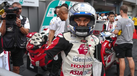 Idemitsu Asia Talent Cup Race 2 went down to the wire on Sunday at Sepang, with home hero Hakim Danish coming out on top after a final corner attack. The Malaysian recovered from a moment of grasstracking just before he made the move and lost the lead, hitting back to defeat Veda Ega Pratama by just 0.047. Shinya Ezawa completed the podium in the damp conditions on Sunday morning, with Race 1 winner Carter Thompson crashing out on the final lap, rider ok.