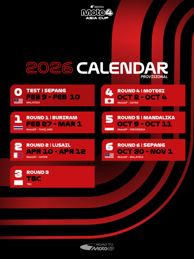 The calendar features five rounds alongside MotoGP as Thailand plays host to the season opener from the 27th of February to March 1st, before Round 2 sees a trip to the Lusail International Circuit in April. Round 3 is to be confirmed before we prepare for a busy end to the season, beginning at the Mobility Resort Motegi in Japan for Round 4. One week later, riders head to the Mandalika International Circuit in Indonesia before the season finale takes place in Malaysia from October 30th to November 1st at Sepang.