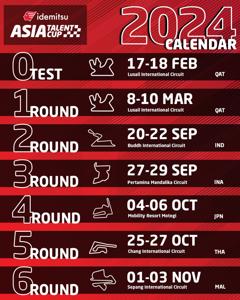 The provisional 2024 Idemitsu Asia Talent Cup calendar can now be revealed, with a 12-race, six-round season set to take place between March and November.