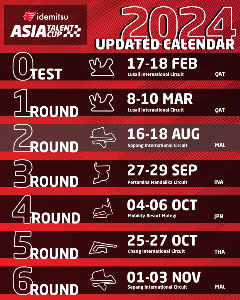 Following the postponement of the 2024 Grand Prix of India, changes have been made to this year’s Idemitsu Asia Talent Cup calendar.